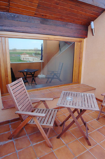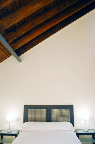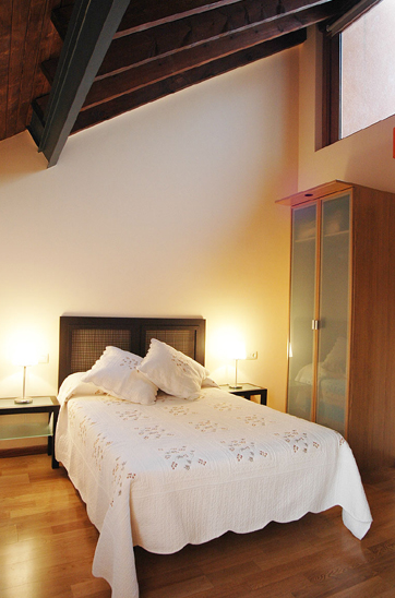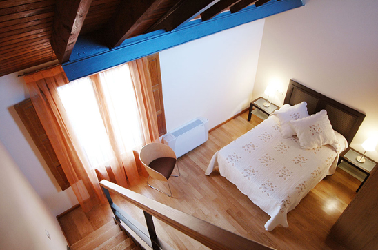 Abuhardillada, cama matrimonial de 1.80m, amplia, luminosa, con balcón, fachada principal con 2 niveles; 24m2 de superficie interior y 9m2 de terraza con mobiliario de exterior (mesa y sillas), para que su estancia sea lo más cómoda y agradable posible, baño completo con secador de pelo, espejo de aumento. TV LED de 32".