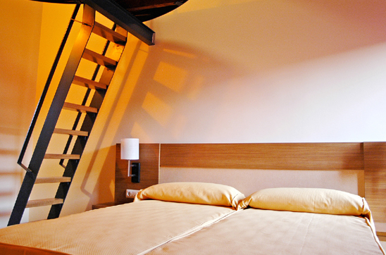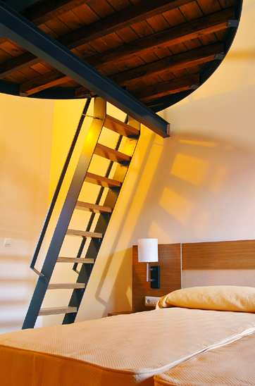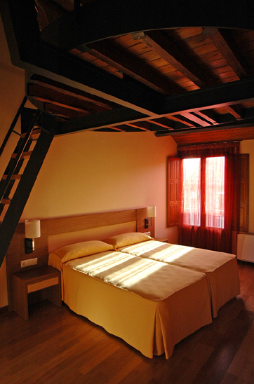 Abuhardillada, cama king size, amplia y espaciosa de 26m2, luminosa, con balcón. La distribución de la suite en dos niveles separa cómodamente la zona de dormitorio, en la planta inferior, de la zona de trabajo o descanso que se encuentra en la planta superior. Orientada a la fachada principal y a la posterior, amplio baño completo con secador de pelo, espejo de aumento y TV LED de 40". Incluye butaca de lectura. Desayuno buffet e iva incluido.